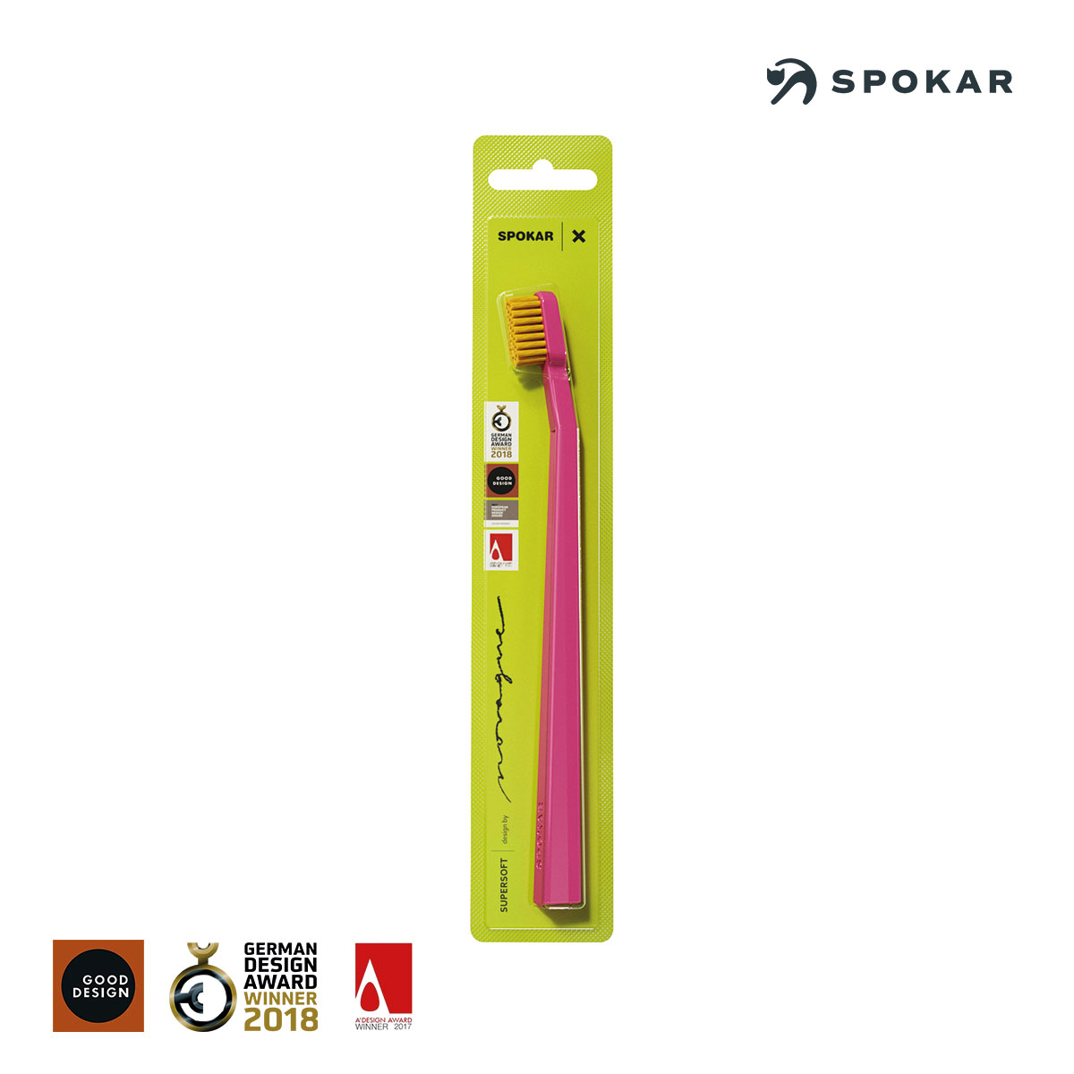 Das Design der SPOKAR X SUPERSOFT- Zahnbürste stammt vom führenden tschechischen Designer MgA. Petr Novague , der für seinen innovativen Ansatz zahlreiche internationale Auszeichnungen erhalten hat.